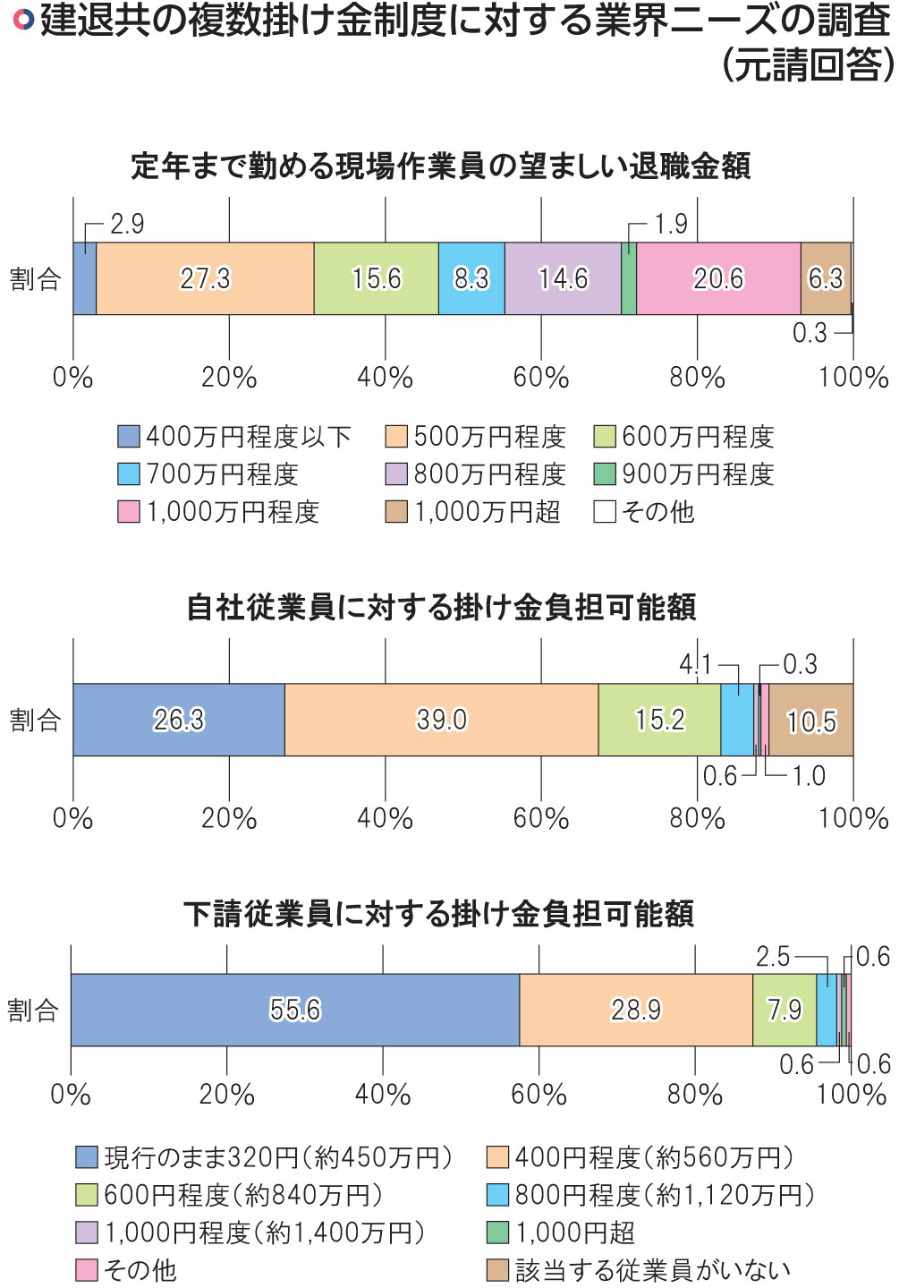 技能者確保への取り組みでは、国交省が労務賃金の相場づくりに関与する中建審の「標準労務費の作成・勧告」へ向けた議論も大詰め。その一方で、建退共の複数掛金制度導入により、退職金でも他産業に遜色がないよう厚みを持たせ、担い手確保につなげる。