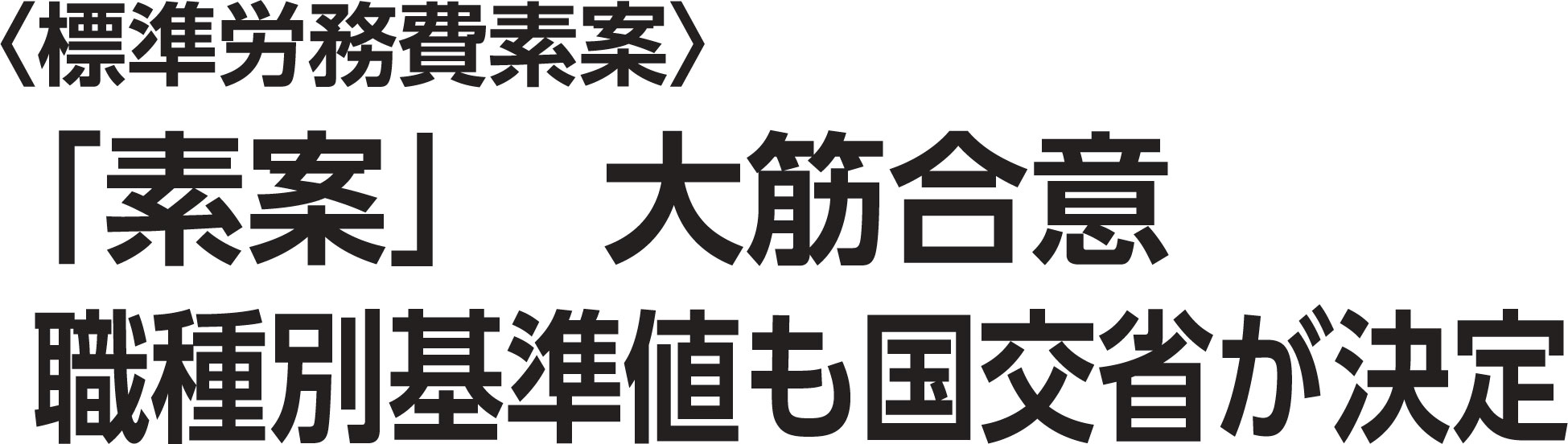 標準労務費素案では、▷標準労務費の基本的考え方、▷個別請負契約に当てはめる時の留意点、▷職種別基準値の定め方、▷実効性確保策などについて明記しました。このうち〝労務費の適正水準″については、「技能者を雇用する建設業者が適正な賃金を支払うための原資」と定義。具体的には、「1日8時間当たりの労務単価である公共工事設計労務単価に、当該工事に従事する見込みの者の作業日数の総和(総労働時間)を乗じた額が、労務費として必要」としました。