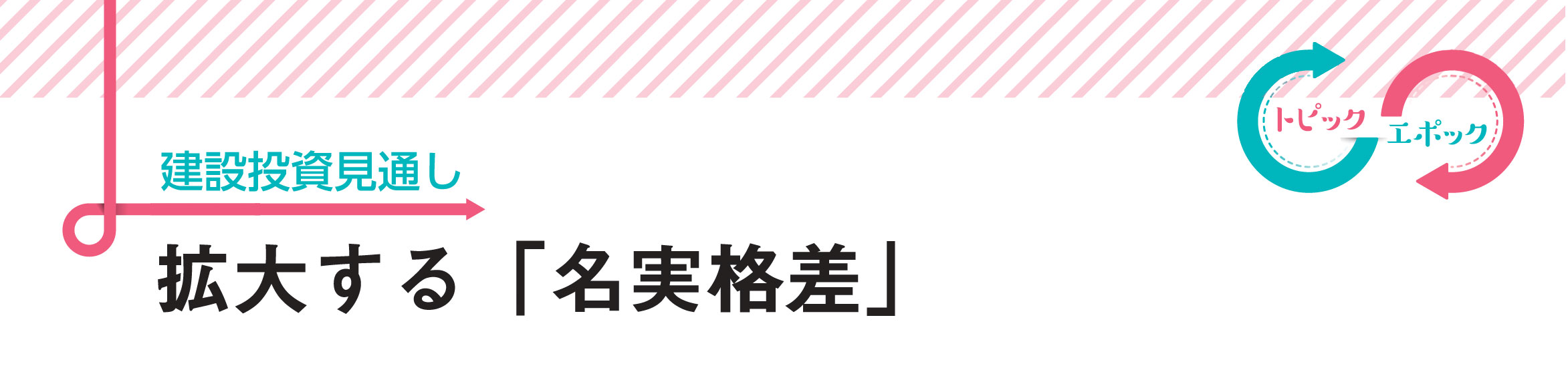 「名実格差」の拡大は人件費や資材などの高騰が大きな要因と見られるが一方で、この格差拡大は実質の工事量の確保が進んでいないことも示している。