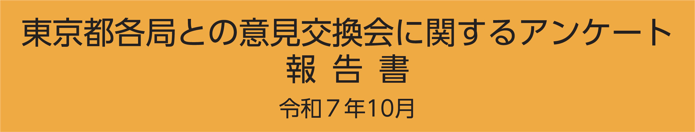当協会は毎年実施している東京都各局との意見交換会に向けて、会員企業の意見・要望を把握し、反映させることを目的にアンケートを実施し『東京都各局との意見交換会に関するアンケート報告書』としてまとめた。