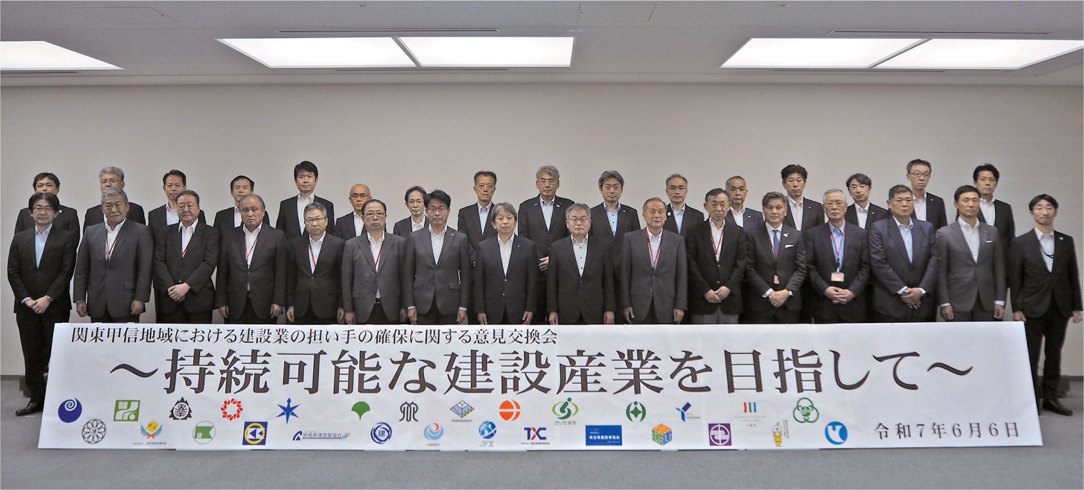 関東地方整備局は6月、建設業14団体、都県・政令市14自治体との「関東甲信地域における建設業の担い手の確保に関する意見交換会」で、▷週休2日の促進、▷魅力・意義(やりがい)の効果的なPRの実施――の2項目について産学官が連携していくことを申し合わせました。会合後の記念撮影で掲げた表題『持続可能な建設産業を目指して』は、新たな会議体の目的です。日本が「縮む労働力問題」に直面するなかで持続可能な建設産業を実現するためには、担い手確保の取り組みは一丁目一番地の課題です。