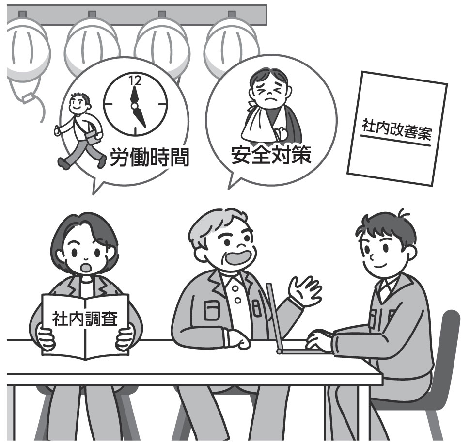 ③是正勧告書等の交付は調査日当日にその場で監督官が作成し、交付されることが多くなっています。この際交付されるのは、法令違反が見つかった事項について記載した「是正勧告書」と、法令違反とまでは断定できないが改善すべき事項を記載した「指導票」です。また働き方改革以後は、長時間労働(過重労働)に関して、専用の指導書が交付されることが増えました。これらについては報告期限が併せて記載されますが、監督官が企業側の意見や要望を聞いてくれることもありますので、自社として現実的な期日設定を相談するようにしましょう。