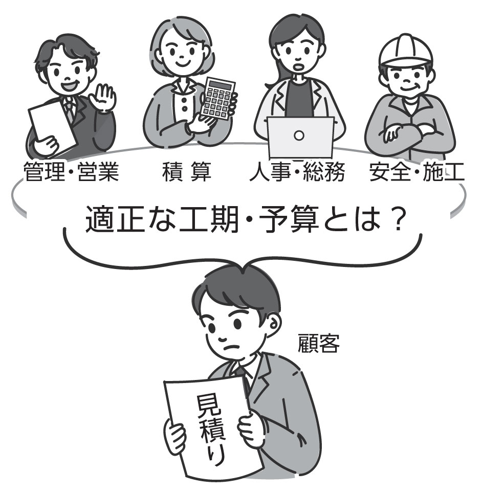 この点については建設業界においても同様の流れが起こっています。それは近年盛んに取り沙汰されている「適正工期の設定」です。建設業において早期竣工は、工事品質と並んでサービスの主軸といえますが、国交省や業界団体は働き方改革を踏まえ、価格ダンピングにもつながる行き過ぎた工期ダンピングに警鐘を鳴らし、発注者団体とも積極的に協議を進めることでこれを是正していく流れを作り出そうとしています。よって個々の建設企業においても、工期や工事内容の交渉・契約において、これまで以上に業務遂行への影響も考慮して判断するという視点を持つべきでしょう。 なお、社外も関与する改善というのは必ずしも先方に負担を強いるものばかりではなく、いわゆるウィンウィンになるものも少なくありません。業界全体、協力業者間、現場単位といった様々な規模での取り組み検討という視点は、実行するかはもちろん慎重に判断するとしても、最初から除いてしまうことは避けた方が良いと思われます。